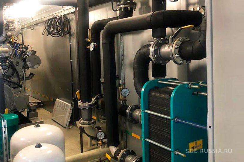 На первой очереди поставки было реализовано решение на базе когенерационной электростанции Siemens SGE 56SL, мощностью 1001 кВт. Отличительной особенностью данной поставки было то, что газовая электростанция пакетировалась в РФ в контейнер, в котором были учтены все технические требования и пожелания заказчика.